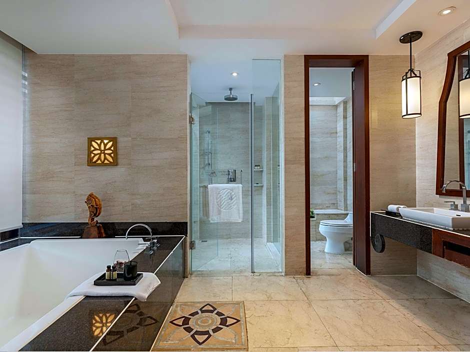 Three on-site dining venues set the scene for memorable meals after a day by the bay. 米兰香餐厅 serves Italian classics in a sleek, modern setting; 左岸西餐厅 pairs seafood, steak, sushi, and European favorites in a chic, romantic atmosphere; and 水润轩中餐厅 delivers Chinese favorites in a family-friendly, traditional-to-modern mix. Spa and wellness packages invite relaxation, while water sports facilities on site add a splash of adventure (extra charges).